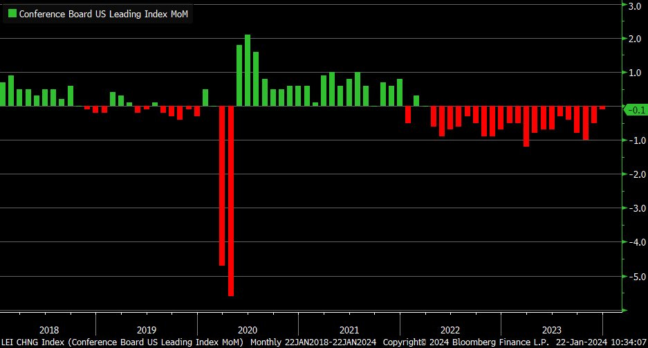 Chỉ số kinh tế dẫn dắt tháng 12 giảm -0.1% M/M, giảm nhẹ hơn ước tính -0.3% & -0.5% của tháng trước - mức giảm nhỏ nhất kể từ tháng 3/2022