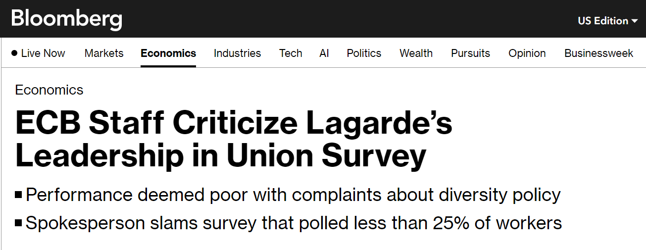 Chủ tịch ECB Christine Lagarde không được lòng các nhân viên của Ngân hàng Trung Ương lớn thứ 2 thế giới trong cuộc khảo sát nội bộ: