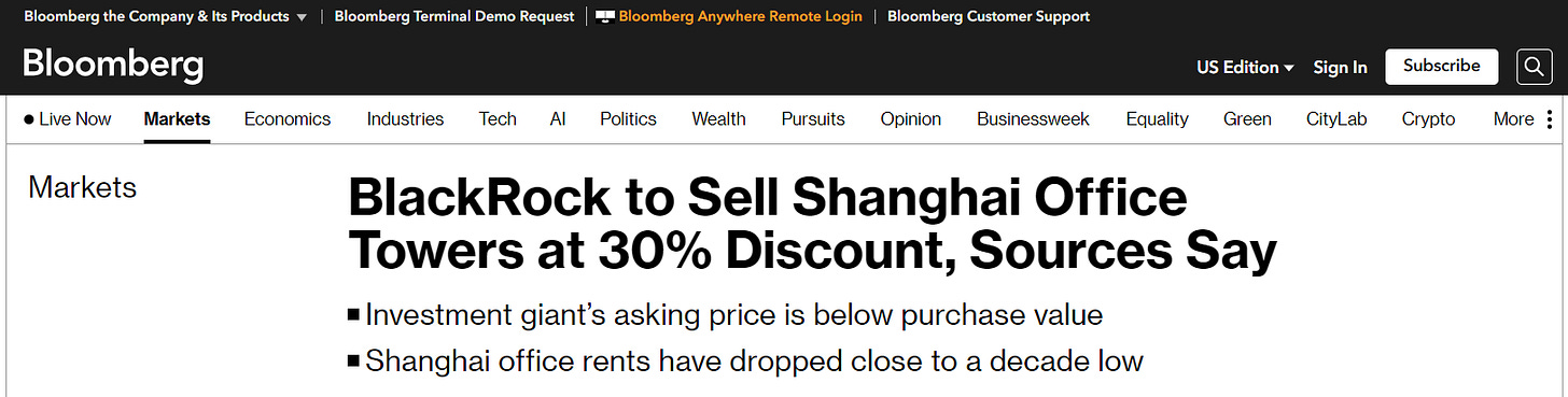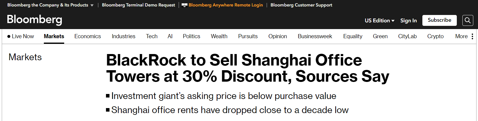 BlackRock đang tìm cách bán một khu phức hợp văn phòng ở Thượng Hải với mức giá thấp hơn -30% so với giá mua.