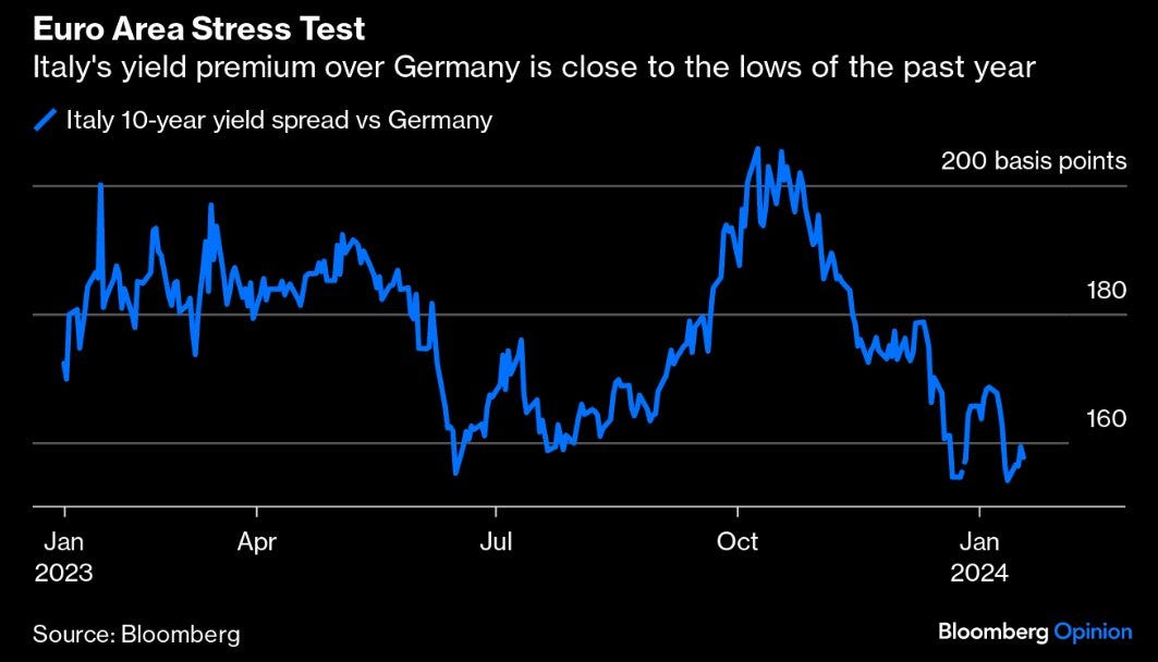 Chênh lệch lợi suất TPCP 10 năm giữa Ý và Đức đang giảm dần. ECB có thể cảm thấy tự tin rằng mình đang đi đúng hướng và tiếp tục tỏ ra diều hâu