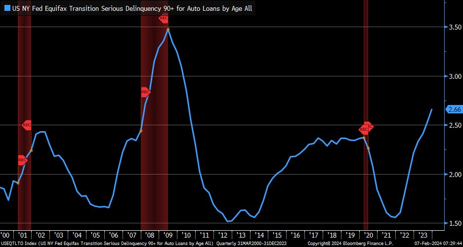 Các khoản vay mua ô tô có tình trạng quá hạn nghiêm trọng: đã tăng trong quý IV lên mức cao nhất hơn một thập kỷ.