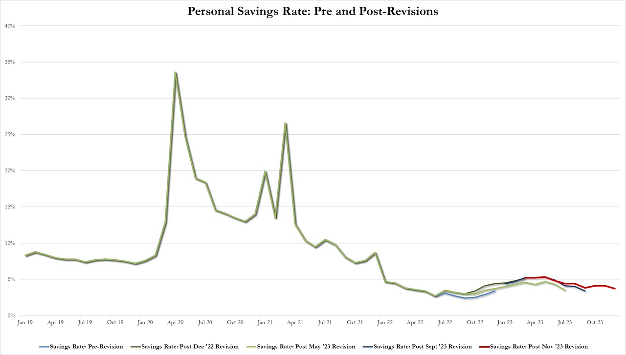 Lãi suất cao kỷ lục cũng khiến tỷ lệ tiết kiệm cá nhân giảm từ hơn 5% xuống 3.7% - thấp nhất kể từ năm 2022 - chỉ trong vài tháng.