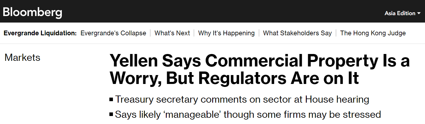 Yellen (Bộ Tài Chính): Suy giảm CRE sẽ không gây ra khủng hoảng