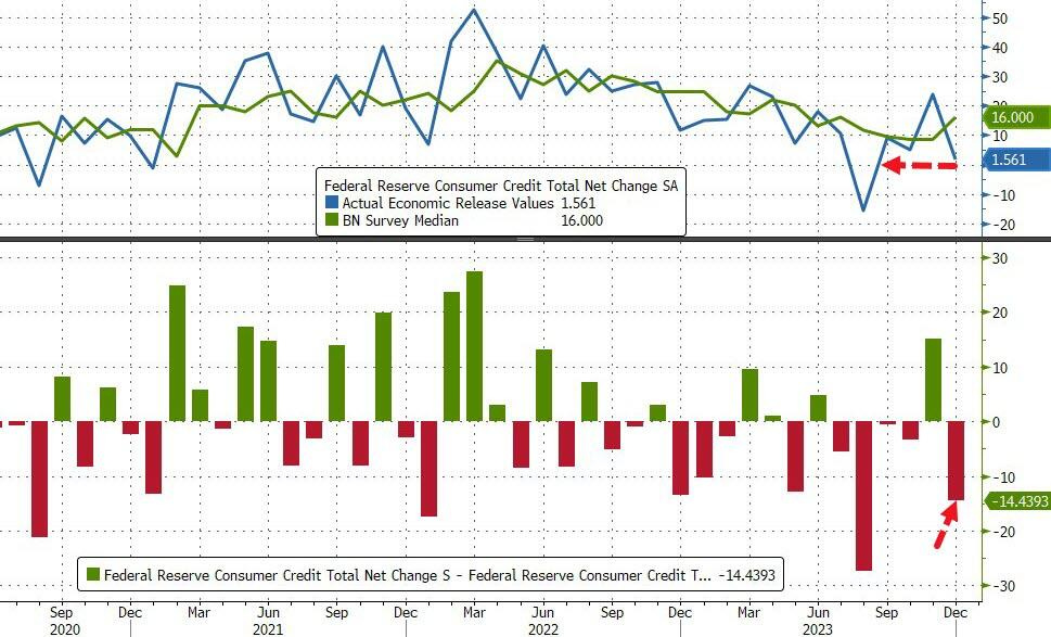 Trong tháng cuối năm 2023, tổng dư nợ tiêu dùng tăng nhẹ +1.561 tỷ USD, thấp hơn đáng kể so với ước tính là tăng +15.9 tỷ USD.