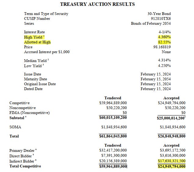 Phiên đấu giá 25 tỷ USD Trái phiếu Kho bạc Mỹ 30Y khá khả quan với mức stop through 2bps: