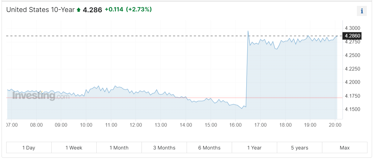 Lợi suất tờ trái phiếu kho bạc chuẩn 10Y tăng vọt ngay sau dữ liệu CPI thất vọng: