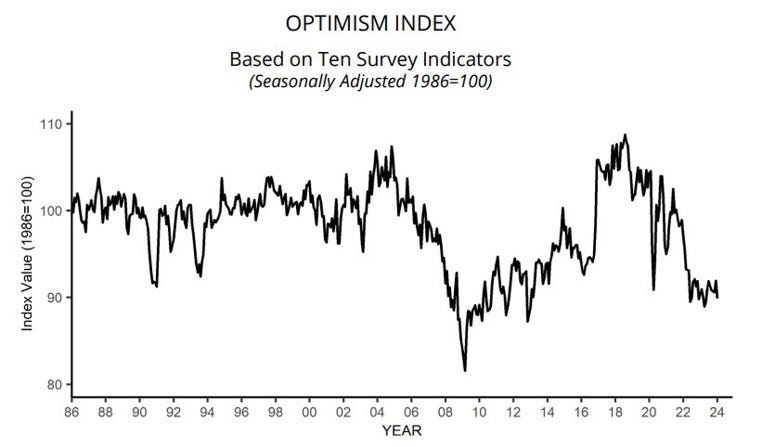 Mức độ lạc quan của doanh nghiệp nhỏ giảm xuống 89.9 so với 91.9 trước đó, đánh dấu tháng thứ 25 liên tiếp thấp hơn mức trung bình 50 năm là 98.