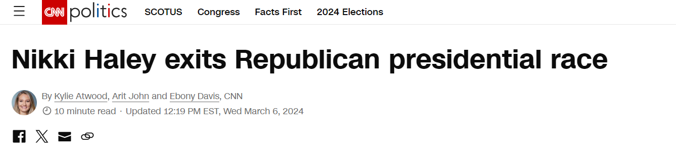 Nikki Haley đã chính thức tuyên bố rút lui khỏi cuộc đua tổng thống Mỹ