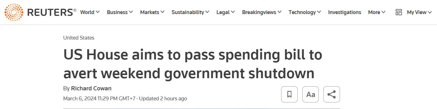 Hạ viện Hoa Kỳ đặt mục tiêu thông qua dự luật chi tiêu để ngăn chặn việc chính phủ đóng cửa vào cuối tuần này.