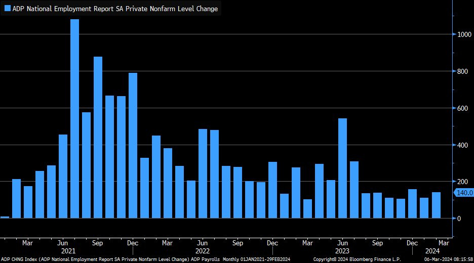 FYI: Chênh lệch giữa khảo sát ADP và báo cáo bảng lương (NFP) của Bộ lao động ngày càng lớn hơn trong những tháng trước.