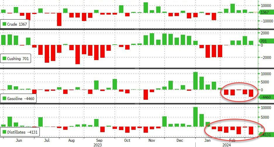 Xăng -4.46 triệu thùng (dự kiến -1.4 triệu thùng) - mức giảm lớn nhất kể từ tháng 11