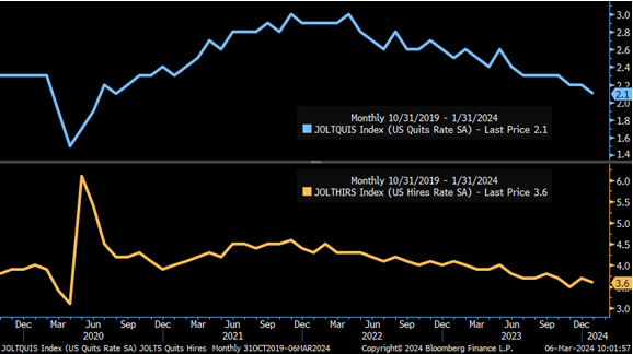 Tỷ lệ bỏ việc trong tháng 1 giảm xuống 2.1% - thấp nhất kể từ tháng 8 năm 2020… … trong khi việc tuyển dụng vẫn ổn định.