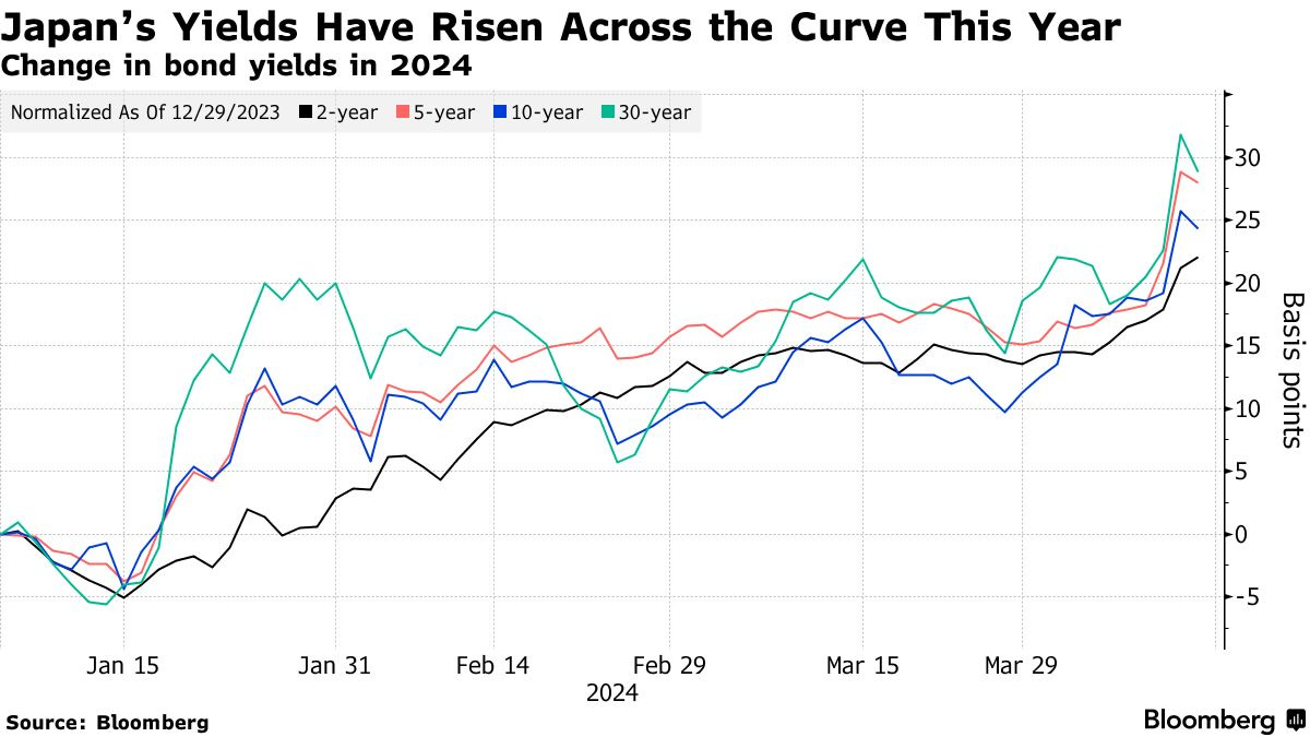 Lợi suất trái phiếu 5 năm của Nhật Bản tăng cao nhất kể từ năm 2011 do kỳ vọng BoJ tăng lãi suất để ngăn chặn đồng yên suy yếu.