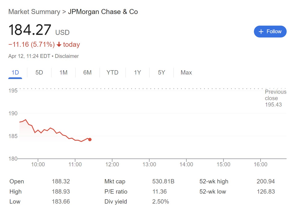 → Cổ phiếu JPM đã giảm hơn 5% trước phiên giao dịch.