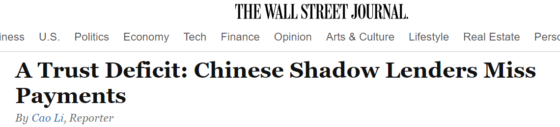 Tín dụng ngầm của Trung Quốc đang có dấu hiệu mất khả năng thanh toán.