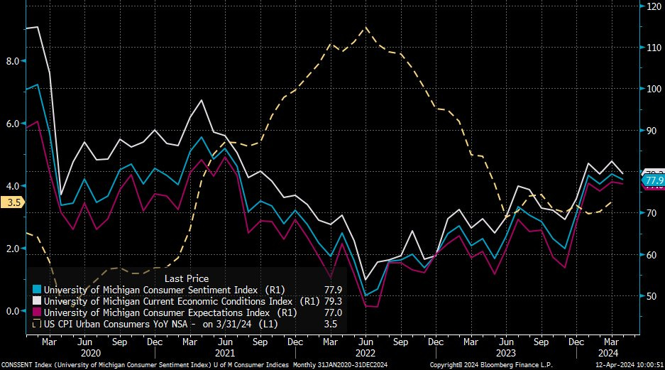 Chỉ số tâm lý người tiêu dùng của Đại học Michigan giảm xuống 77.9 trong tháng 4 (< ước tính 79).
