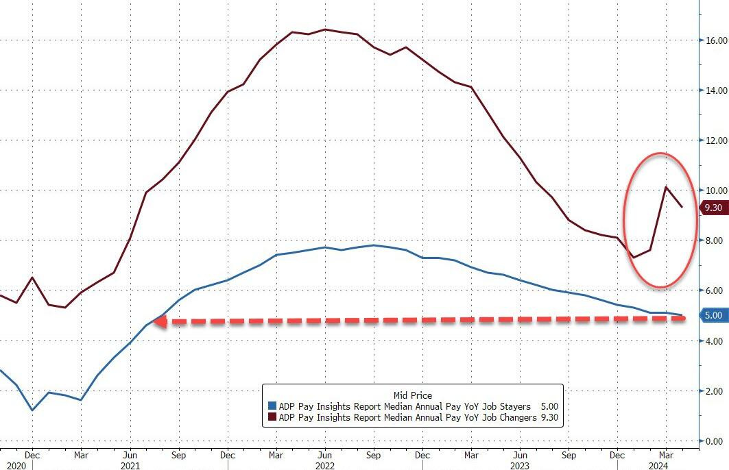 Tăng trưởng tiền lương chậm lại đối với cả người chuyển việc (9.3%) và người giữ nguyên công việc cũ (5%).