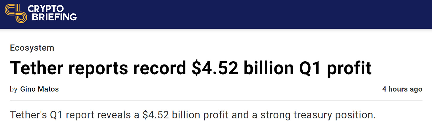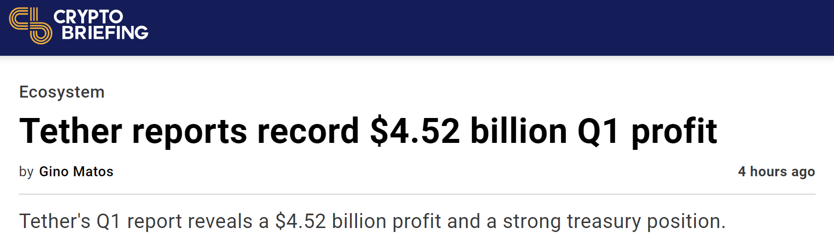 Tether báo cáo lợi nhuận khủng trong Q1: