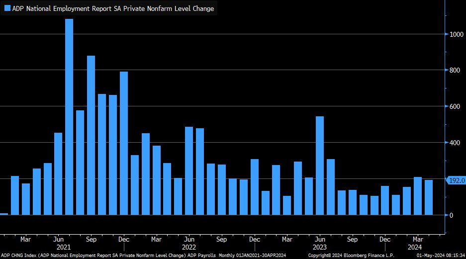 Báo cáo ADP ghi nhận tăng +192,000 việc làm tháng 4 (> dự kiến +183,000)- mức tăng hàng tháng cao nhất kể từ tháng 7.