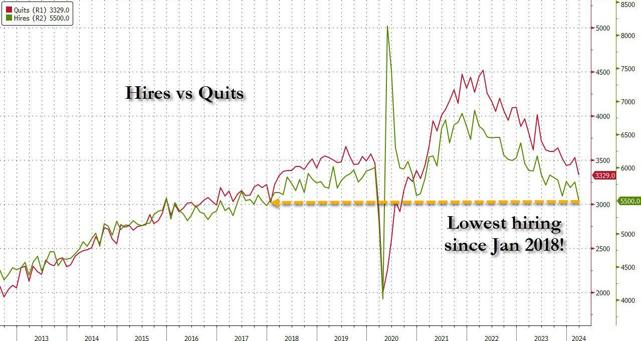 => Điều này khá hiếm trong nhưng cũng là một dấu hiệu cho thấy tăng trưởng tiền lương sẽ chậm lại (vì người lao động ít nhảy việc hơn) nhưng tốc độ tuyển dụng vẫn được duy trì.