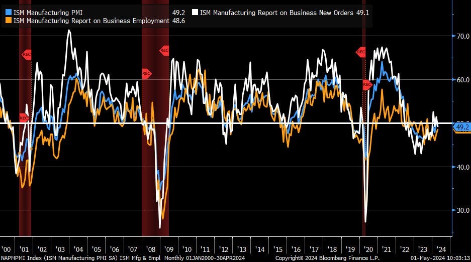 PMI Sản xuất của ISM tháng 4 giảm xuống 49.2 (< ước tính 50, < tháng trước 50.3).