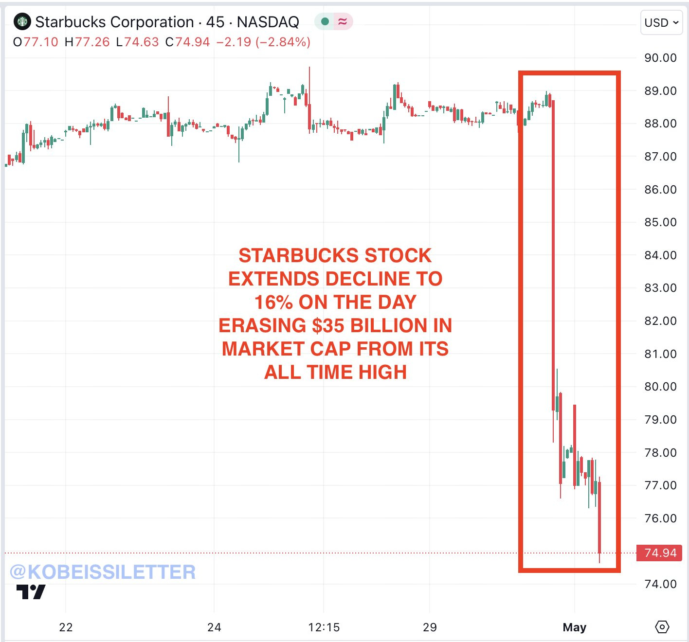Cổ phiếu Starbucks chạm mức thấp nhất kể từ tháng 6/2022 sau báo cáo thu nhập.
