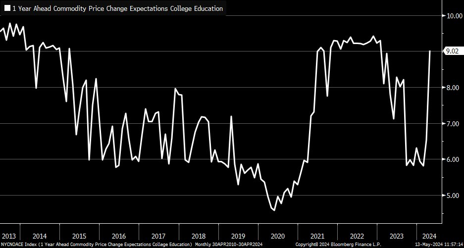 Kỳ vọng học phí đại học tăng trong 1 năm tới tăng lên 9.02%, cao nhất kể từ cuối năm 2022