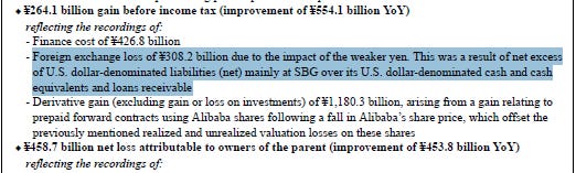 Q4/23, JPY tăng khoảng 3.6% so với USD, nhưng Softbank vẫn lỗ 308 tỷ JPY vì FX do việc đồng Yen tăng giá vẫn không thể bù đắp khoản lỗ từ nợ niêm yết bằng USD…