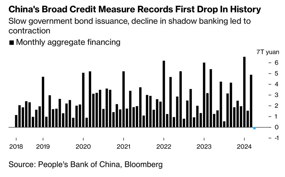 Tổng tài trợ vốn toàn xã hội tháng 4 đã giảm gần 200 tỷ nhân dân tệ (27.7 tỷ USD) so với tháng trước - lần giảm đầu tiên kể từ 2017