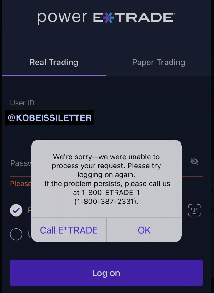 E-Trade ngừng hoạt động ngay khi Gamestop tăng hơn 100% khiến nhiều người dùng đã không thể đăng nhập vào tài khoản của họ