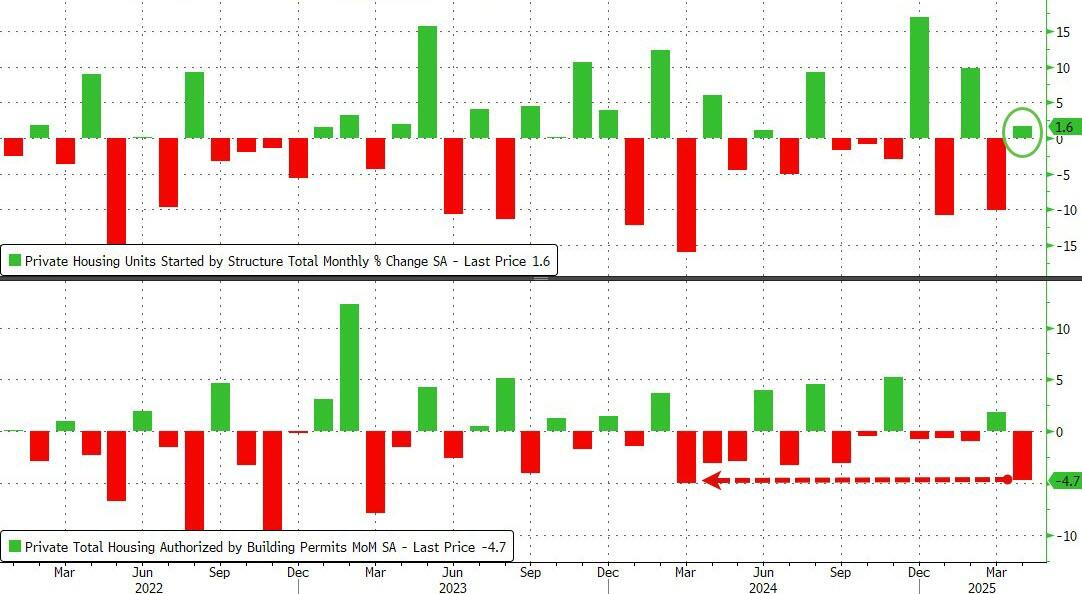 Số nhà bắt đầu xây chỉ +1.6% MoM dưới +4.0% dự báo sau khi gãy -10.1% vào tháng 3