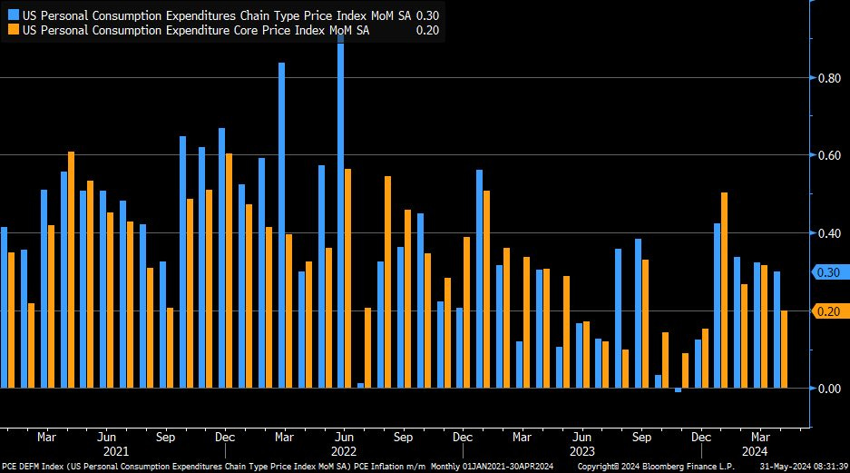PCE toàn phần: tăng +0.3% MoM (bằng ước tính).