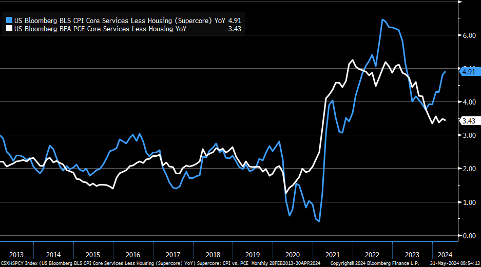 Xu hướng đối nghịch giữa CPI cốt lõi và PCE cốt lõi tiếp tục gia tăng.