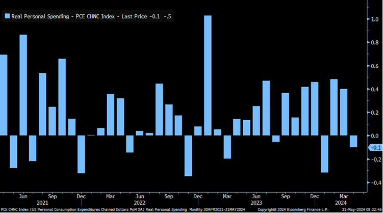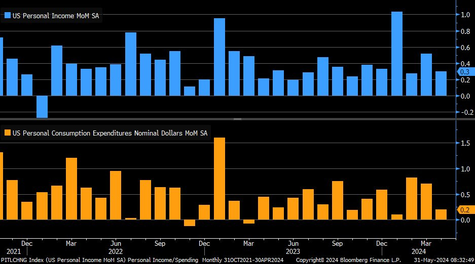 Tăng trưởng thu nhập và chi tiêu giảm trong tháng 4, đặc biệt tăng trưởng chi tiêu đang thấp hơn tăng trưởng thu nhập: