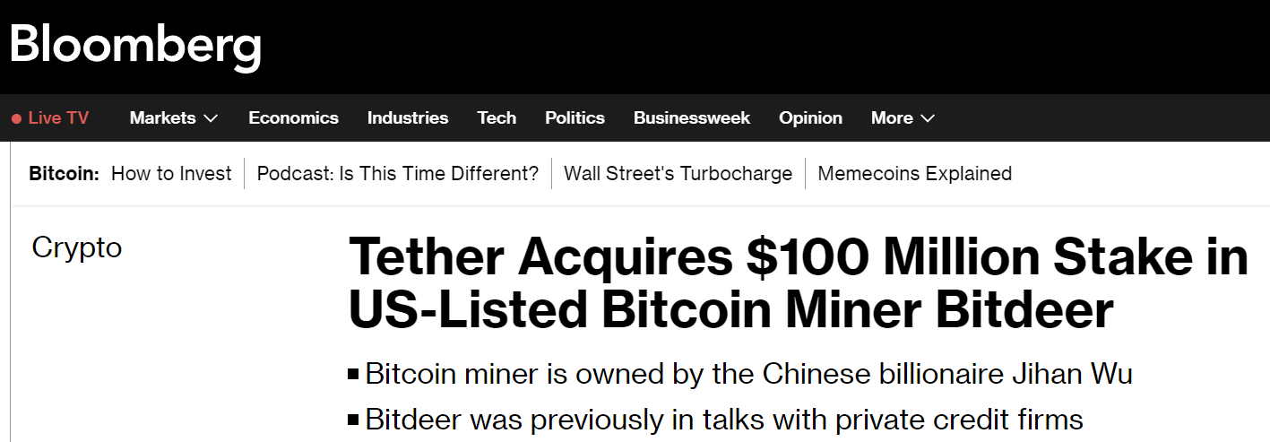 Thị trường crypto: Tether mua lại cổ phần của Bitdeer