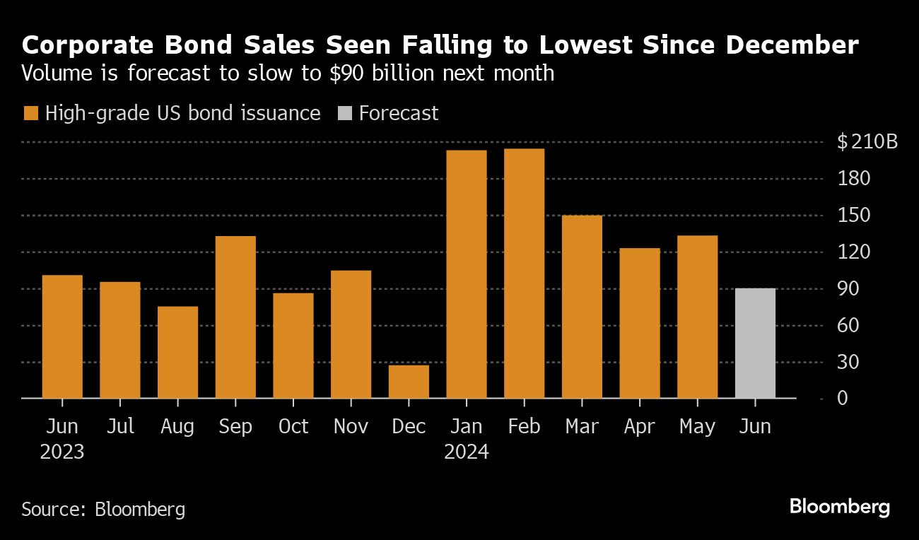 Tháng tới, giá trị phát hành trái phiếu doanh nghiệp hạng đầu tư dự kiến sẽ giảm thấp nhất kể từ tháng 12.