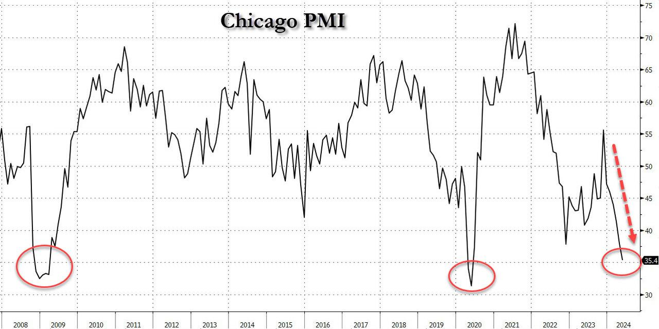 Chỉ số PMI của Chicago tiếp tục sụt giảm mạnh trong tháng 5 xuống 35.4 - gần bằng các giai đoạn suy thoái lớn.