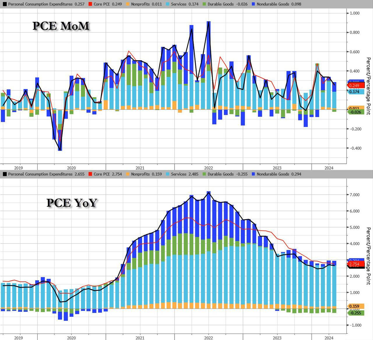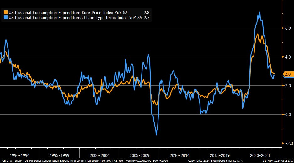 PCE toàn phần: tăng +2.7% YoY (bằng ước tính và tháng trước).