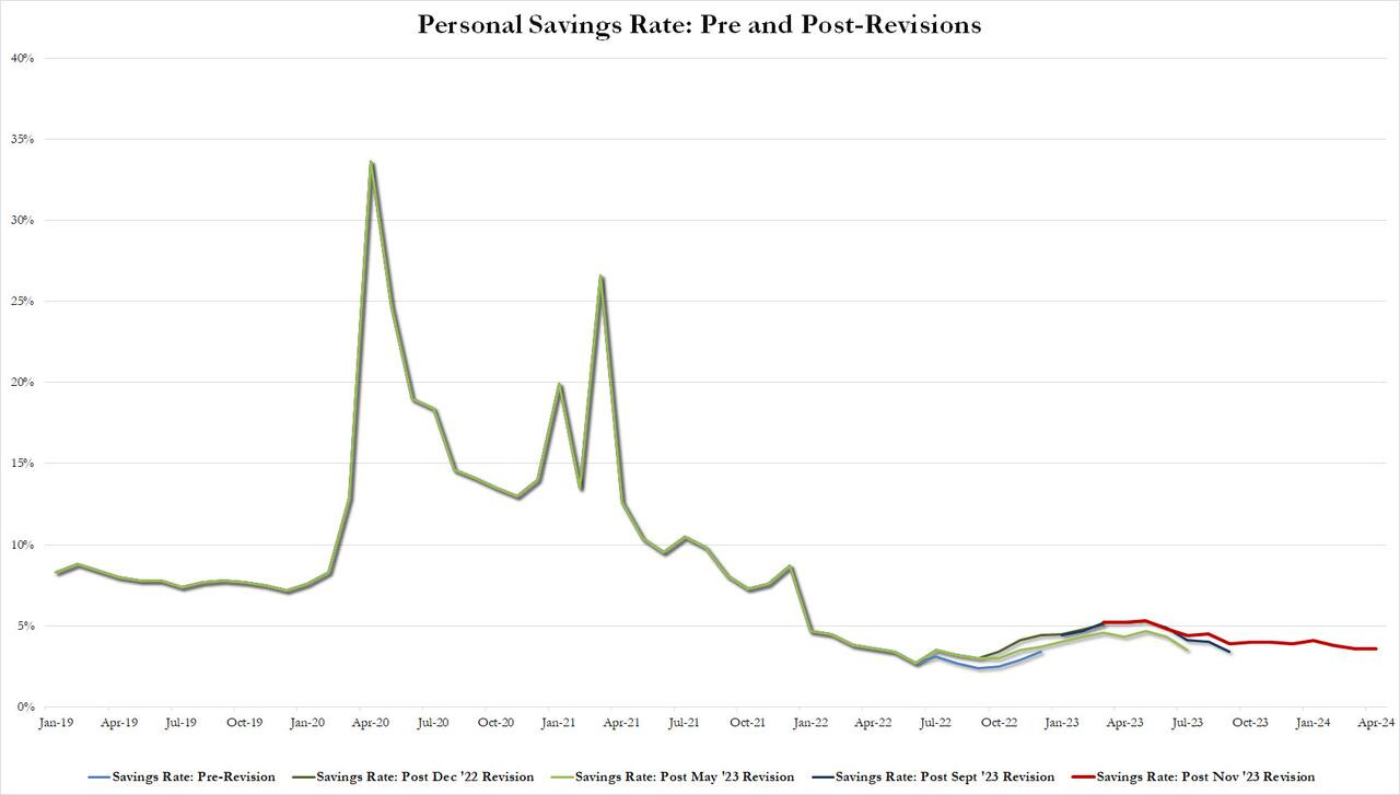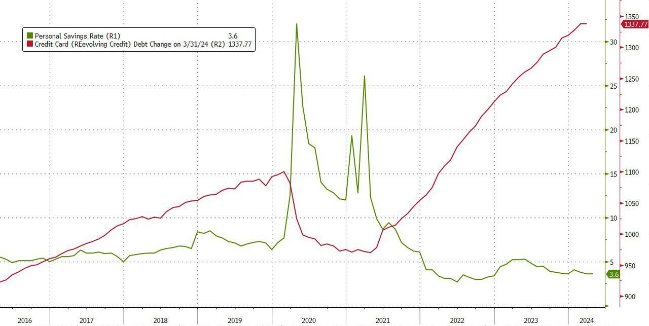 Tỷ lệ tiết kiệm không đổi so với tháng trước (ở mức 3.6%) - mức thấp nhất kể từ tháng 11/2022.