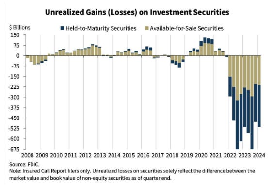 Khoản lỗ chưa thực hiện của hệ thống các ngân hàng tăng lên 517 tỷ USD trong quý 1/2024.