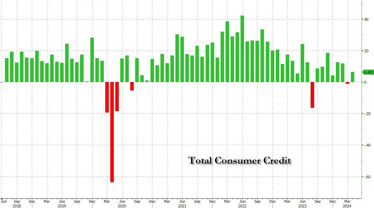 Tổng tín dụng tiêu dùng tháng 4 tăng +6.4 tỷ USD, thấp hơn nhiều so với ước tính +10 tỷ USD