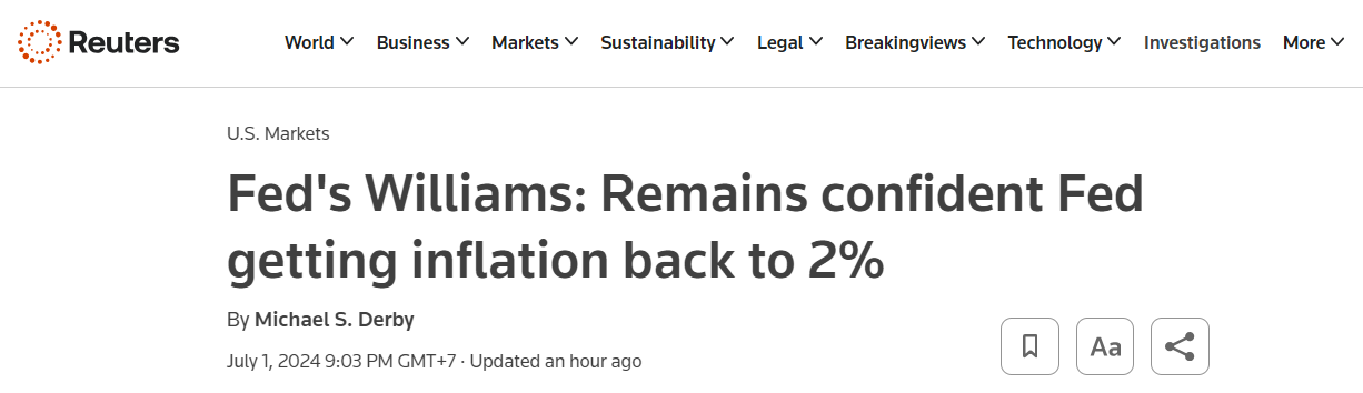 Tin tưởng rằng Fed đang trên đường đạt được mục tiêu lạm phát 2% một cách chậm mà chắc