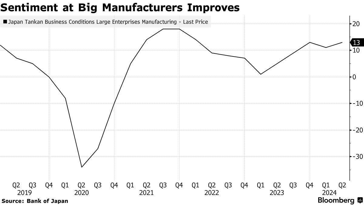 Báo cáo Tankan của BOJ cho thấy chỉ số tâm lý tháng 6 giữa các doanh nghiệp lớn nhất nước này đã tăng lên 13 từ mức 11 vào tháng 3.