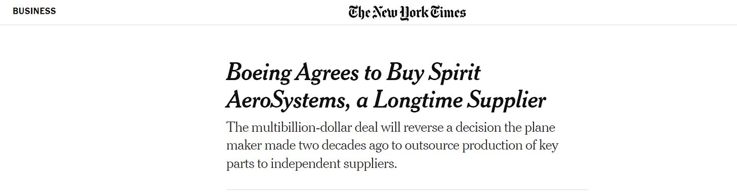 Boeing đồng ý mua Spirit AeroSystems với giá hơn 4 tỷ USD, trả 37.25 USD/cổ phiếu