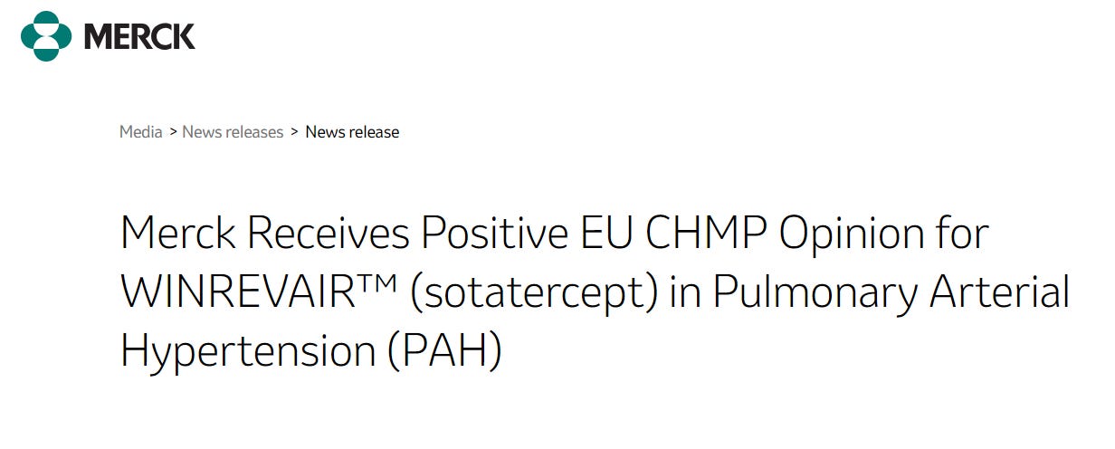 Merck được Ủy ban Sản phẩm Thuốc dùng cho Con người (CHMP) tại châu Âu chấp thuận thuốc tăng huyết áp động mạch phổi PAH Winrevair