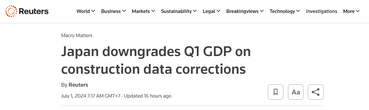 Các tin tức khác: Chi tiêu xây dựng tại Mỹ sụt giảm - BOJ chưa chắc đã nâng lãi suất trong tháng 7