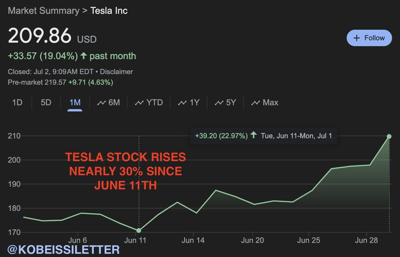 Tesla công bố đã giao 443,956 xe điện trong Q2/2024, vượt kỳ vọng là 439,300 xe. Cổ phiếu Tesla tăng sau kết quả kinh doanh tốt hơn dự kiến