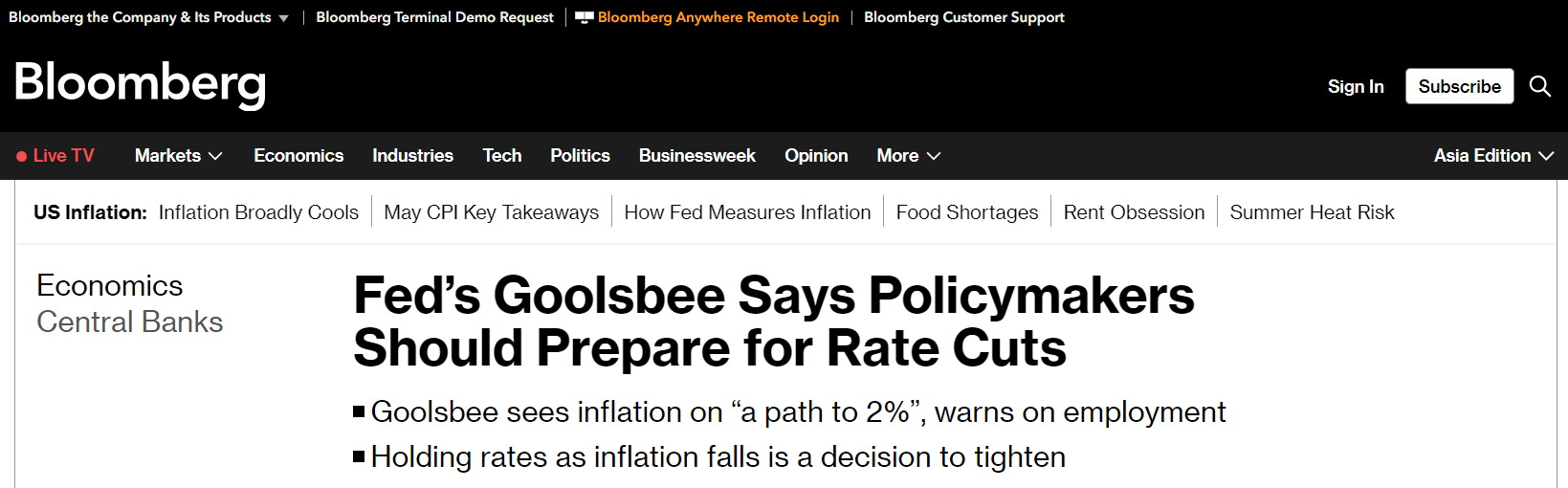 Goolsbee: Lạm phát đã được cải thiện ở Mỹ