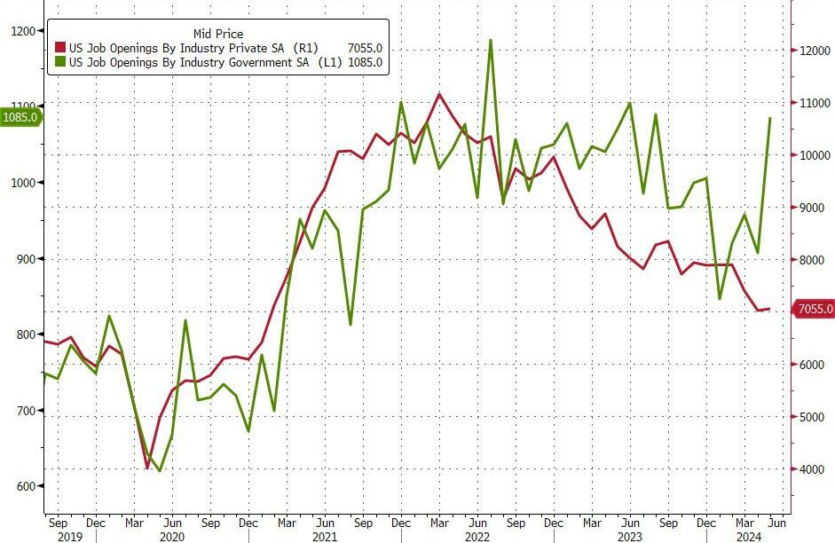 Số lượng việc làm trong chính phủ tăng vọt trong khi số lượng việc làm ở khu vực tư nhân giảm mạnh.