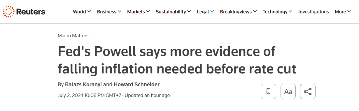 Fed cần thêm tự tin hơn (về số liệu lạm phát) trước khi giảm lãi suất